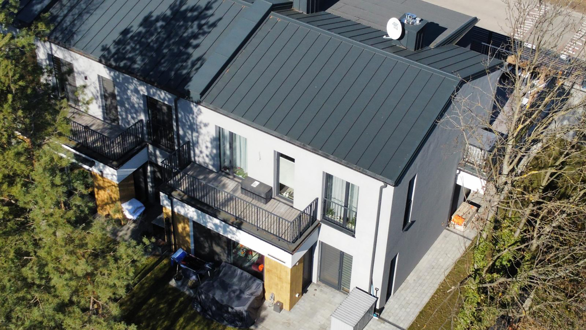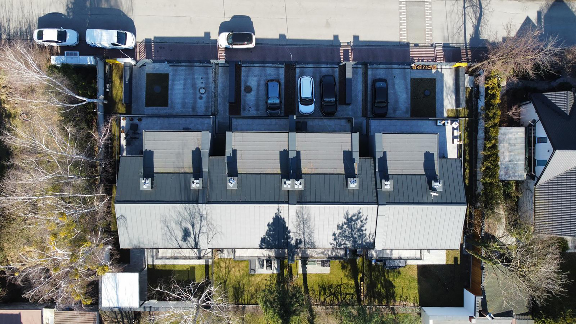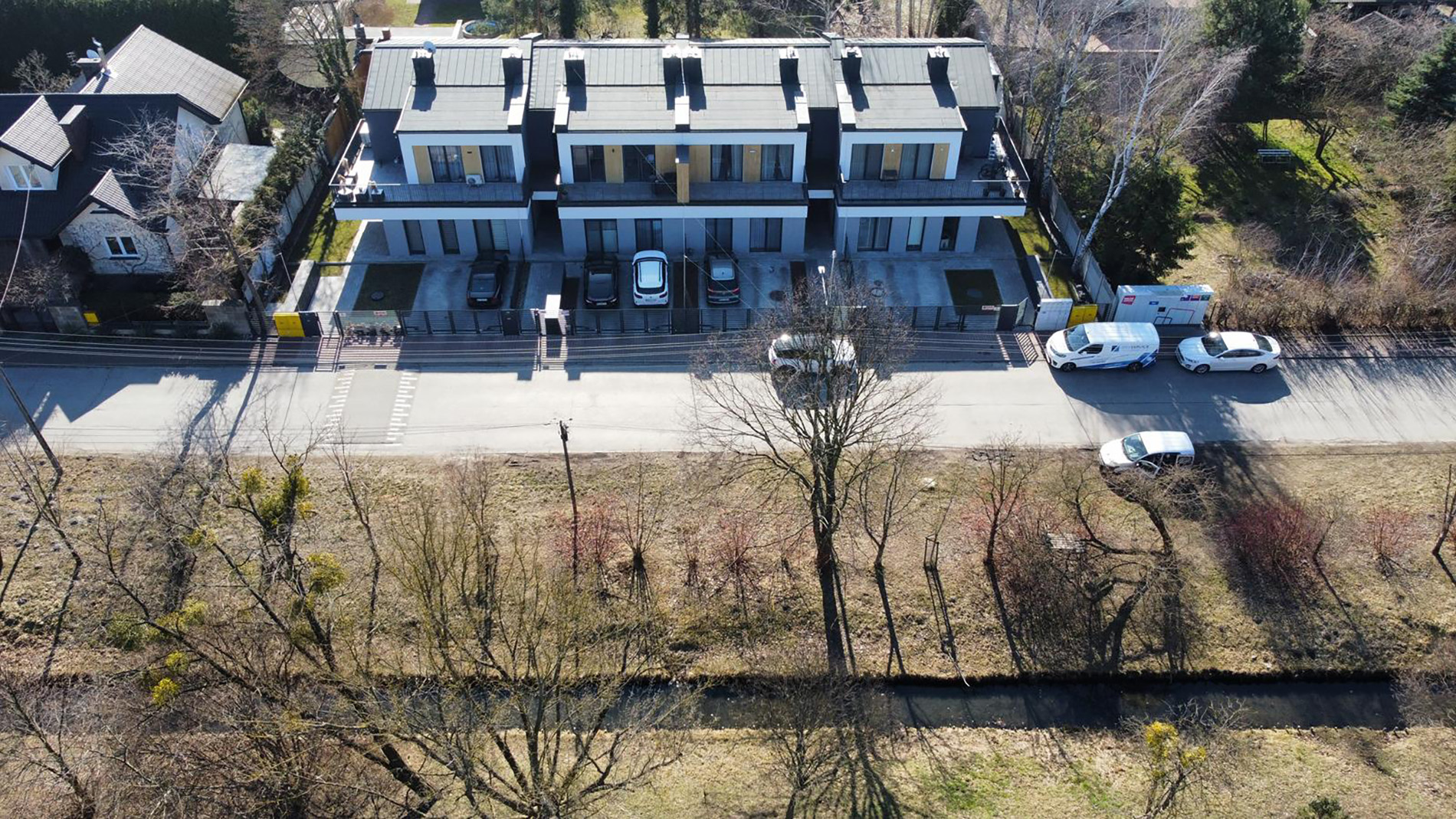 Legionów 5 w Błoniu to zrealizowana inwestycja zaledwie 30 kilometrów od Warszawy, składająca się z czterech budynków jednorodzinnych dwulokalowych w zabudowie szeregowej. Projekt wyróżniają ciepłe, słoneczne elewacje, duże przeszklenia oraz przestronne tarasy, które stały się jednym z charakterystycznych elementów tej kameralnej zabudowy.